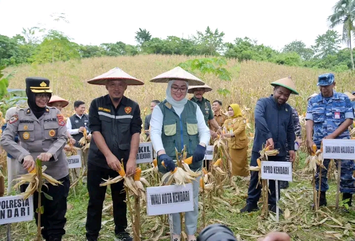 Kendari, Tajukinfo.com – Ketua DPRD Kota Kendari La Ode Muhammad Inarto bersama Wali Kota Kendari Siksa Karina Imran dan Wakil Wali Kota Kendari Sudirman melakukan panen Komoditi Jagung pakan ternak Kelompok Tani (Poktan) Mulamendre Kelurahan Lalodati, Kecamatan Puuwatu, Senin 24 Maret 2025.