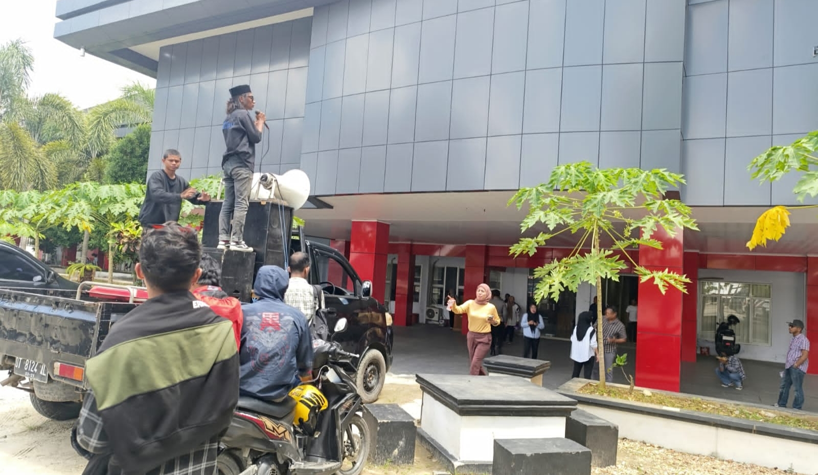Selain itu saat menyambangi DPRD Sultra, Salah satu staf sekretariat DPRD Sultra mengatakan kepada pendemo untuk datang kembali dilain waktu, dikarenakan anggota DPRD Sultra sementara menjalankan tugas diluar daerah.