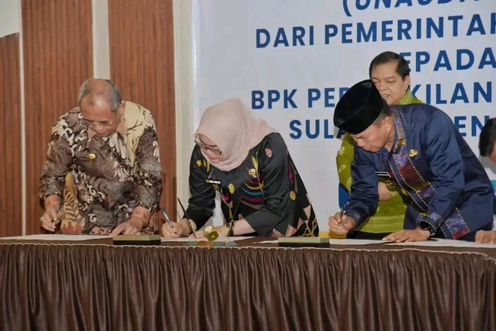 Gubernur Sultra Andi Sumangerukka dalam menyampaikan bahwa hari ini sudah menyampaikan hasil laporan keuangan selama satu tahun yaitu di tahun 2024.